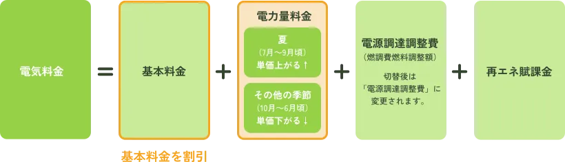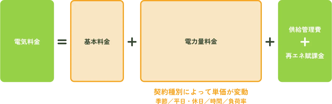 電気料金は「基本料金」と「従量料金」で構成されています。